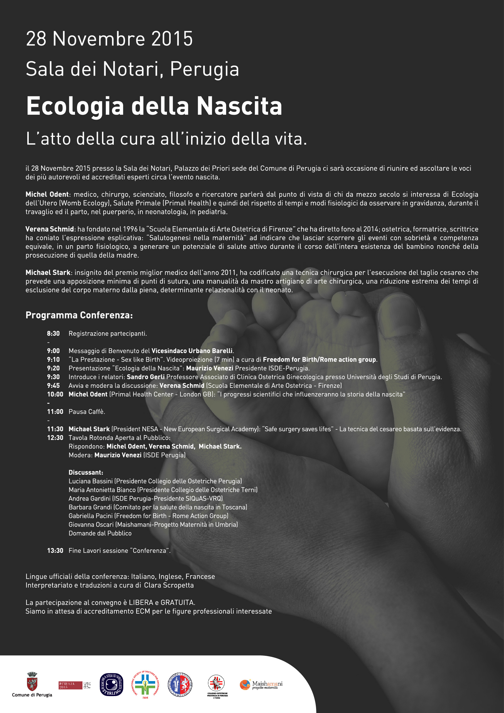 | ECOLOGIA DELLA NASCITA – L’atto della cura all’inizio della vita. Perugia, 28 novembre 2015 ore 9.00 Sala dei Notari | Locandina Programma Scheda di iscrizione |