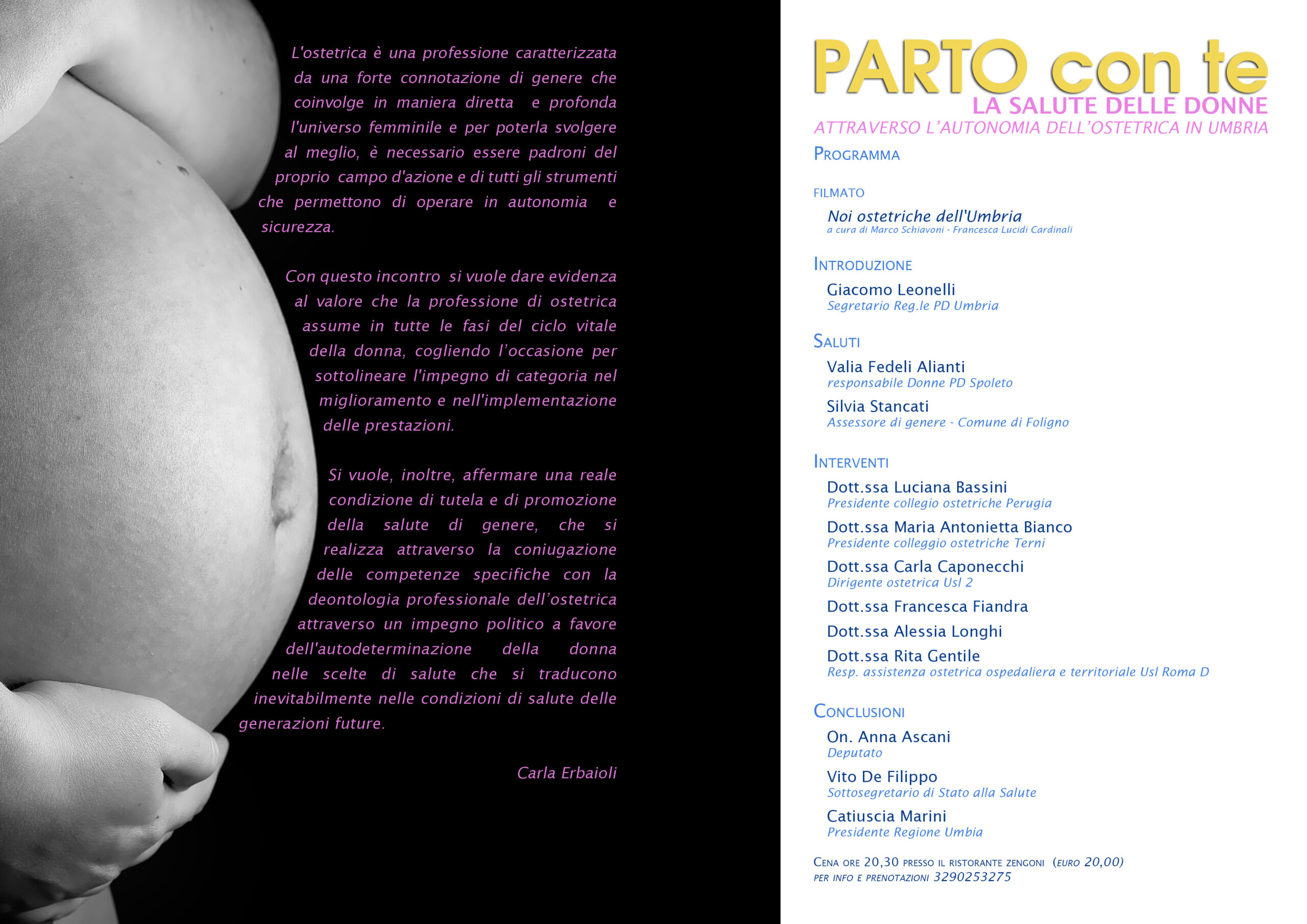 | PARTO CON TE – La salute delle donne attraverso l’autonomia dell’ostetrica in Umbria Spoleto, 21 febbraio 2014 ore 17.00 Sala Conferenze Ristorante Zengoni -loc. Napoletto | PartoConTe-Fronte PartoConTe-Interno |