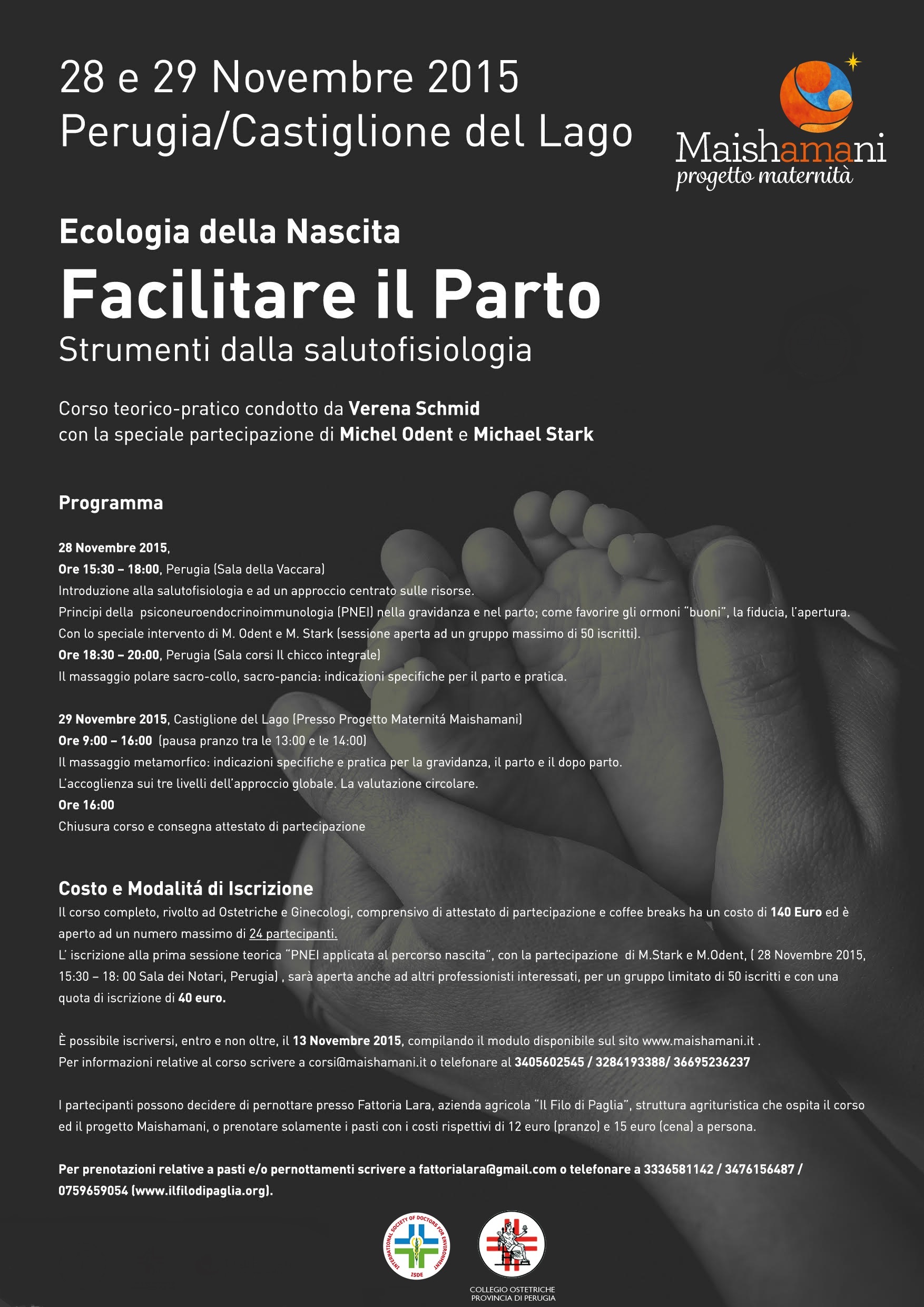 | FACILITARE IL PARTO – Strumenti dalla salutofisiologia Perugia/Castiglione del Lago, 28-29 novembre 2015 Perugia – Sala della Vaccara Castiglione del Lago – Presso Progetto Maternità Maishamani | Locandina |